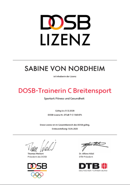Meine große Motivatorin, für die berufliche Neuausrichtung, ist meine Oma, die mit ihren 85 Jahren jedes Mal freudestrahlend vom Osteoporose Sport nach Hause kommt und im Allgemeinen, bis auf ein paar altersbedingte Wehwehchen noch ziemlich fit unterwegs ist. Somit lohnt es sich doch, etwas für sich selbst und die eigene Gesundheit zu tun, um möglichst lange fit zu bleiben. Jeder möchte alt werden, aber nicht alt sein.